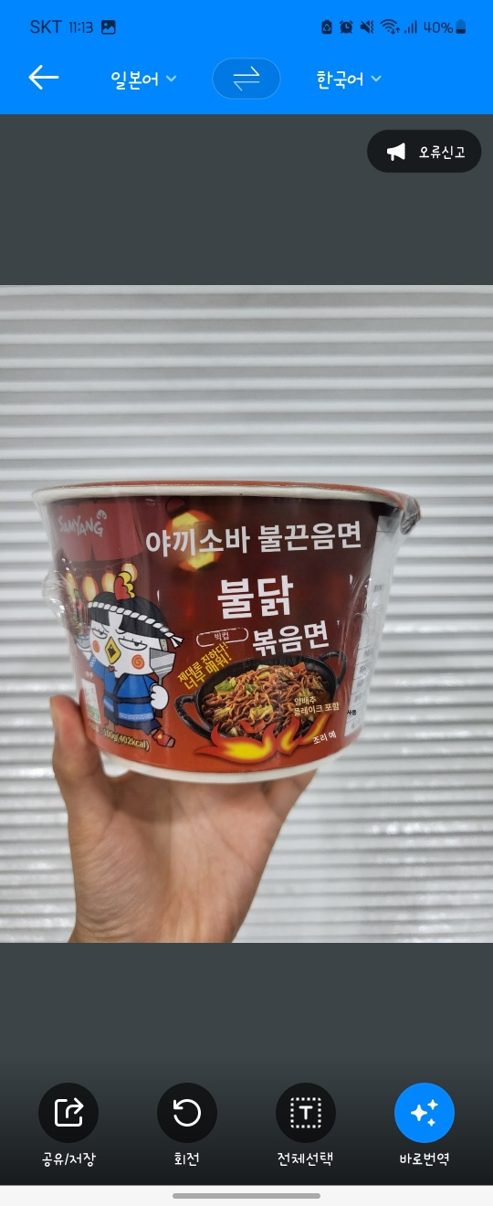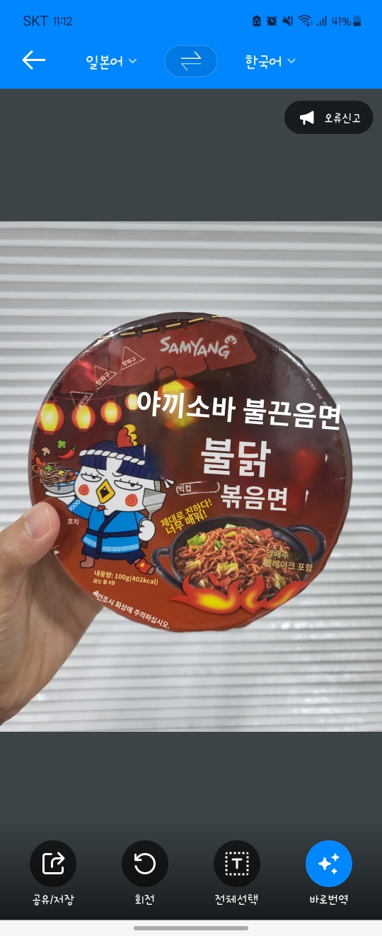 야끼소바 불닭볶음면 전면 및 전면 번역