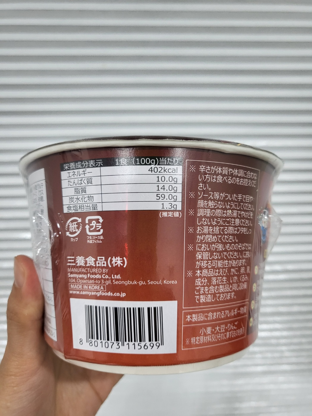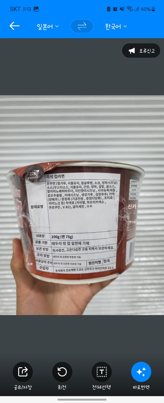 야끼소바 불닭볶음면 성분표 및 성분표 번역