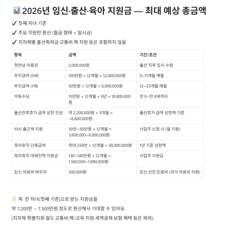 📊2026년 임신·출산·육아 지원금 — 최대 예상 총금액