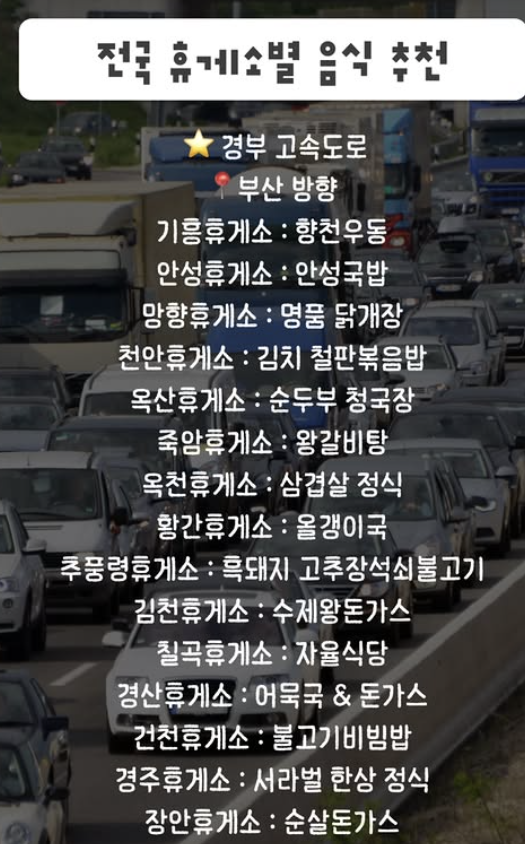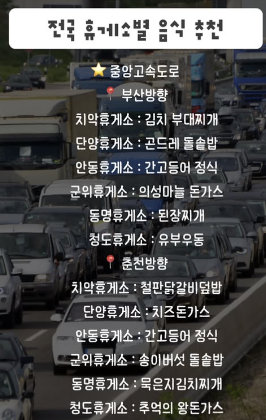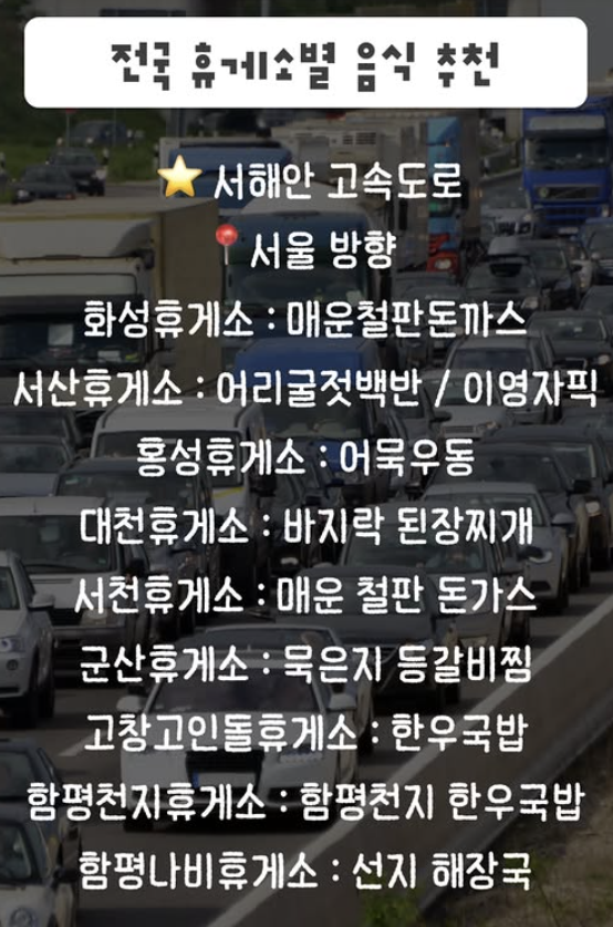 안녕하세요 알두쓸모입니다. 오늘은 전국 휴게소 맛집에 대핸 글을 작성해보도록 하겠습니다. 좋은 행복한 설 연휴 되세요.