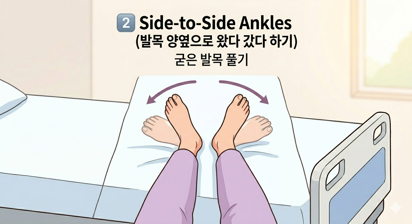 - 발목 회전 및 좌우 움직임: 관절의 경직을 예방합니다.