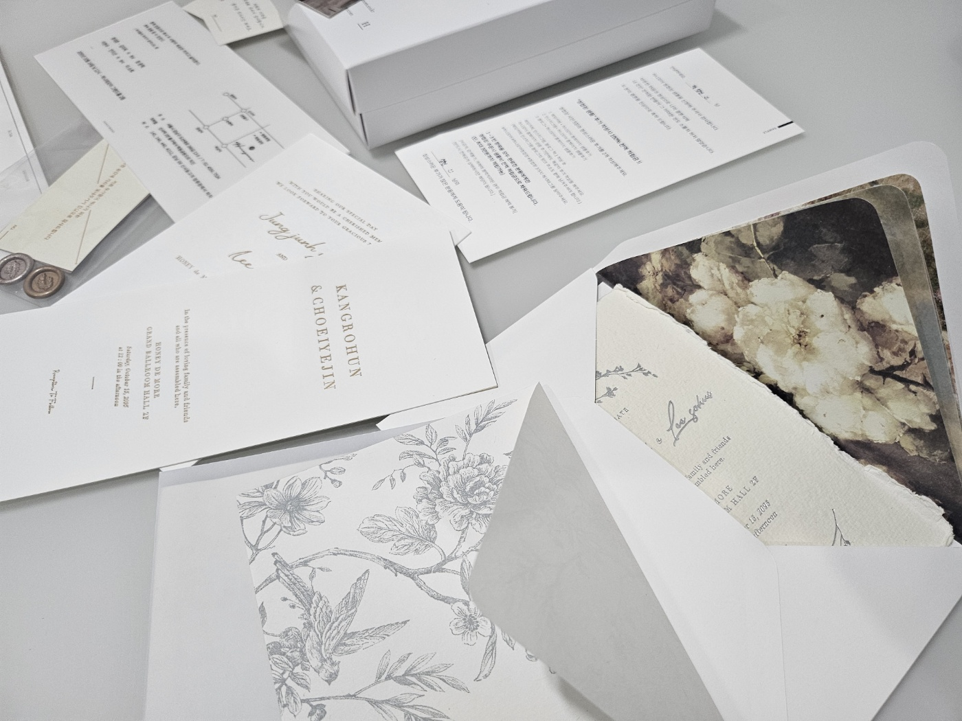 많은 이야기와 추억, 기쁨과 설레임 그리고 감사를 담을 수 있는 청첩장 아름다운 그날을 위해 당신의 이야기를 청첩장에 담습니다.