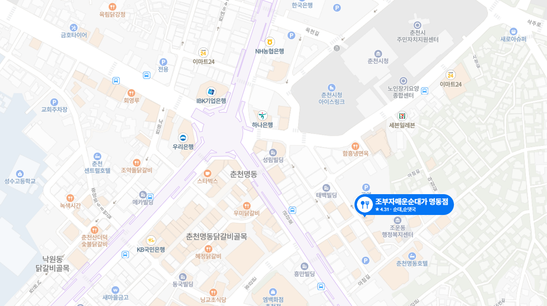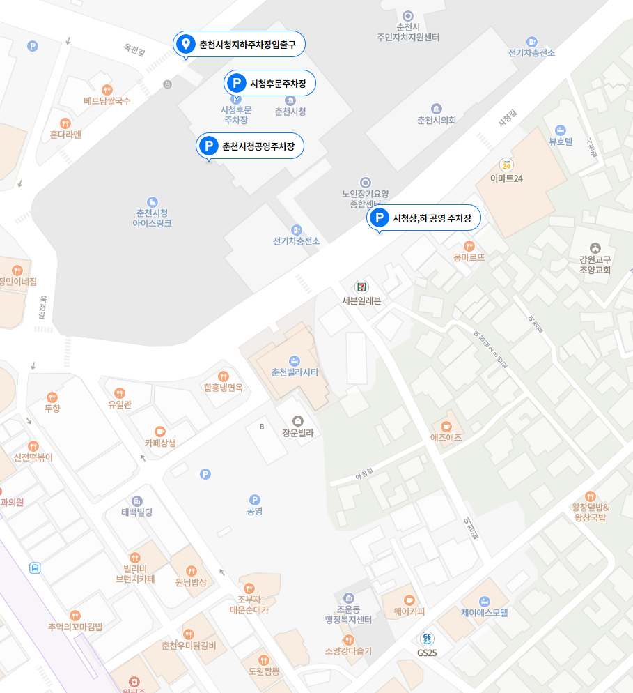 주말에 조부자매운순대가를 방문하시는 경우는 춘천시청이 주말은 주차가 무료이기에, 춘천시청 주차장에 주차하시는 것을 추천드립니다.