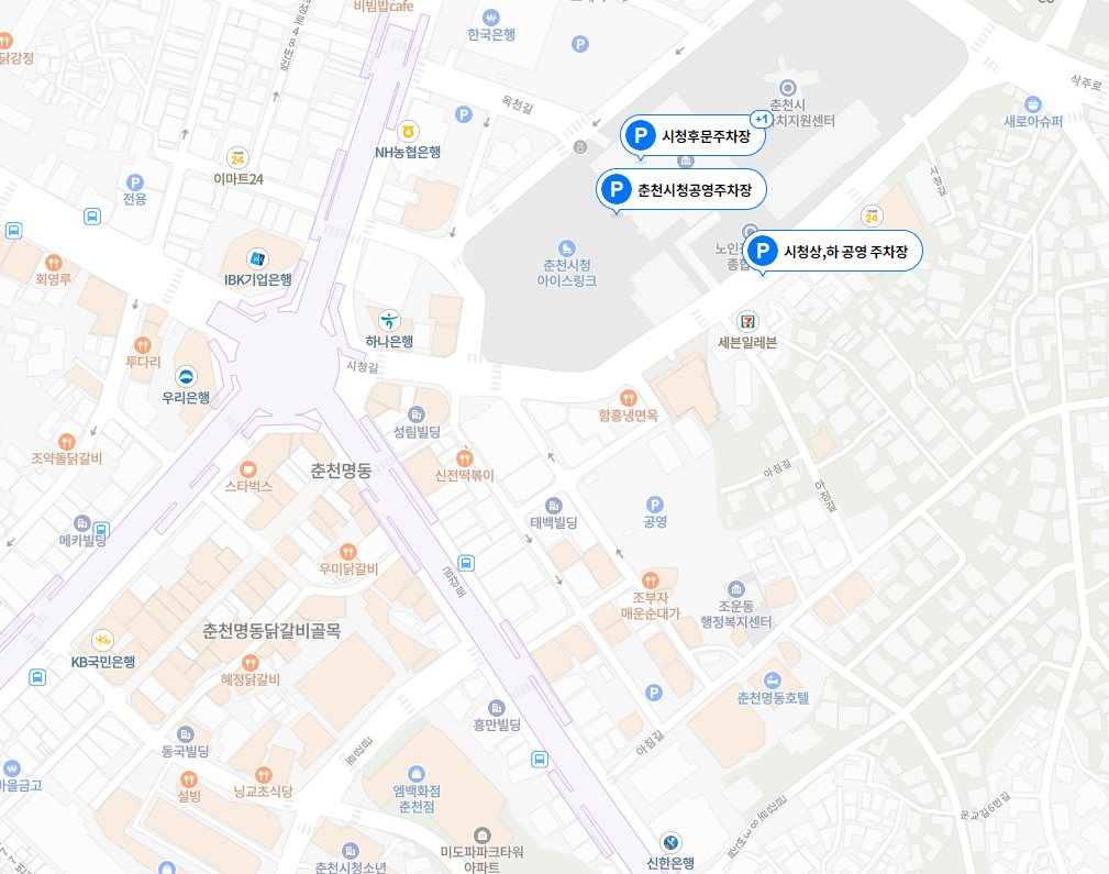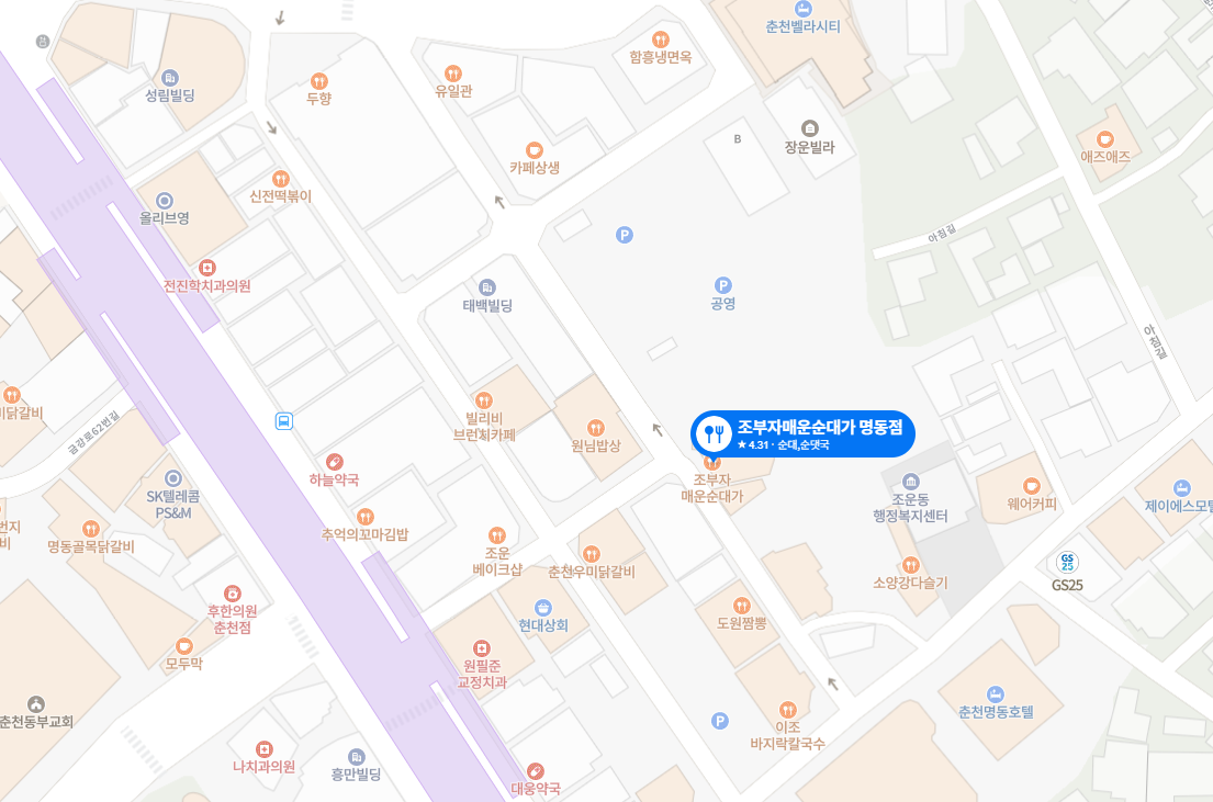 주말에 조부자매운순대가를 방문하시는 경우는 춘천시청이 주말은 주차가 무료이기에, 춘천시청 주차장에 주차하시는 것을 추천드립니다.
