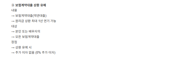 ③ 보험계약대출 상환 유예