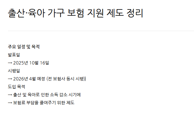- 출산 시 → 새로 태어난 아기가 아닌 → 기존 형제·자매의 보험료가 할인