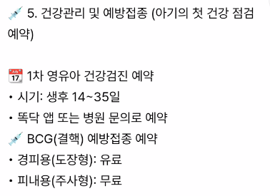 💉 5. 건강관리 및 예방접종 (아기의 첫 건강 점검 예약)