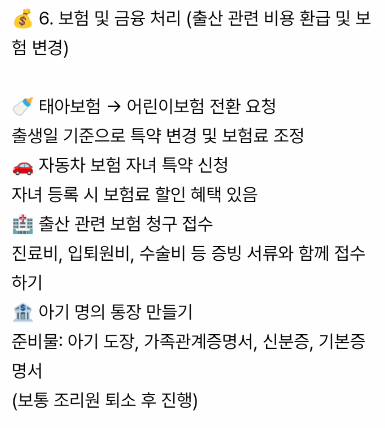 💰 6. 보험 및 금융 처리 (출산 관련 비용 환급 및 보험 변경)