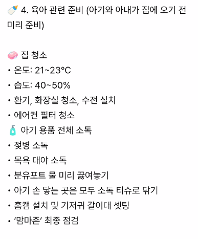 🍼 4. 육아 관련 준비 (아기와 아내가 집에 오기 전 미리 준비)