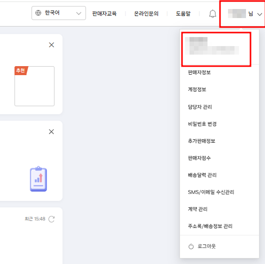 쿠팡 윙 메인 화면 > 판매자정보 > 계정정보 메뉴에 갑니다.