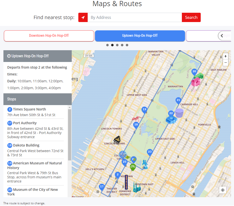 Check out our New York sightseeing bus route map to choose a tour that will guide you on a dream trip through New York City. We hit all the major attractions, so plan your hop on/hop off route and book online today!