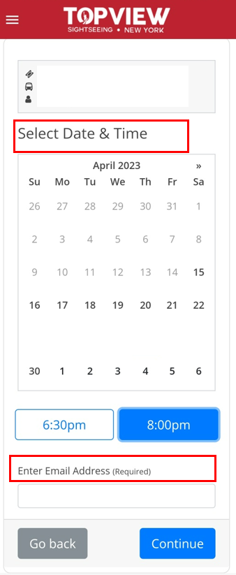 7. 인증코드를 입력 후, (1) 여행 날짜, (2) 탑승시간, (3) 이메일 주소를 적습니다.