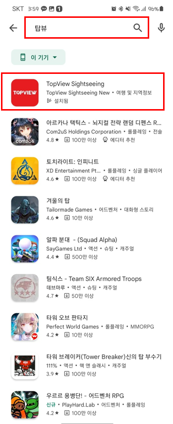 1. 플레이스토어에서 탑븊를 검색합니다.