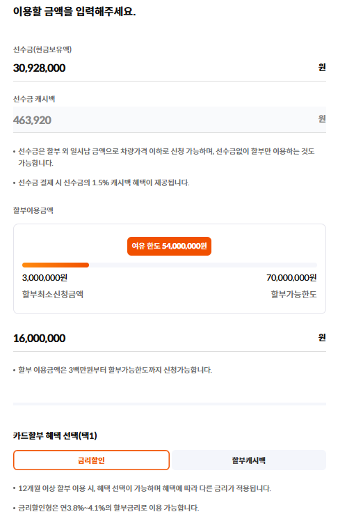 3.8~4.1%의 금리로 할부를 이용할 수 있습니다.