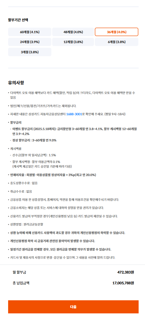 삼성카드 다이렉트 오토 카드 할부