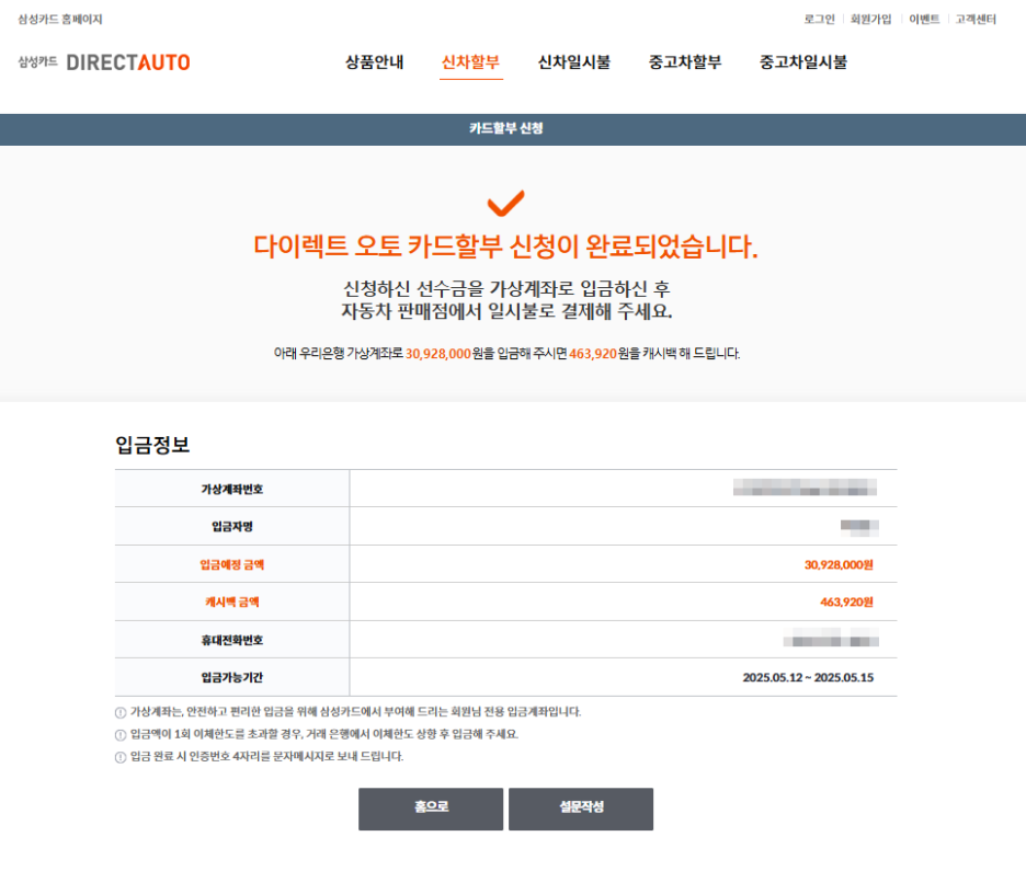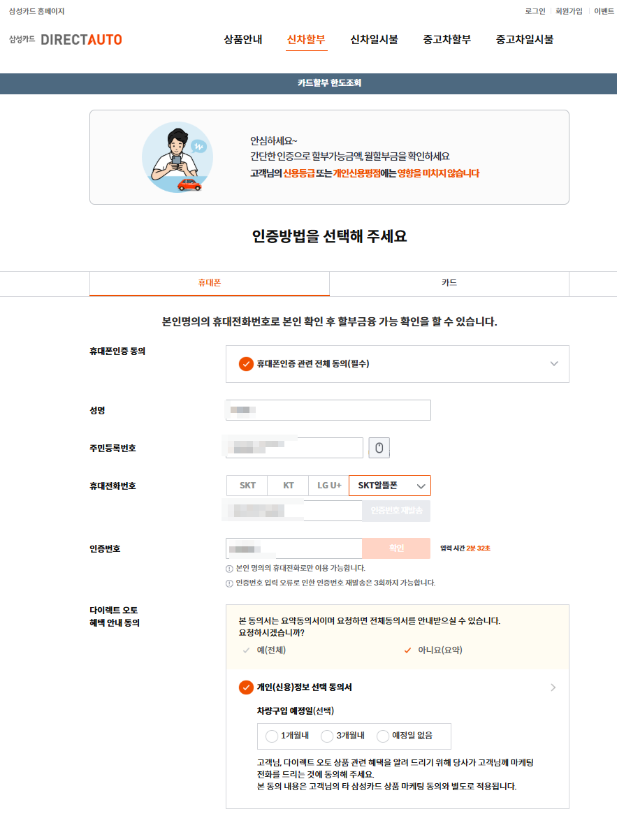 삼성카드 다이렉트 오토할부