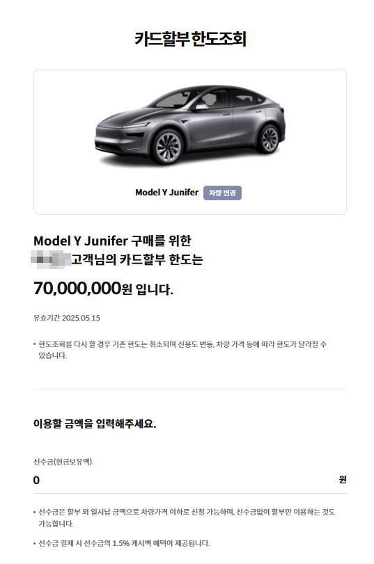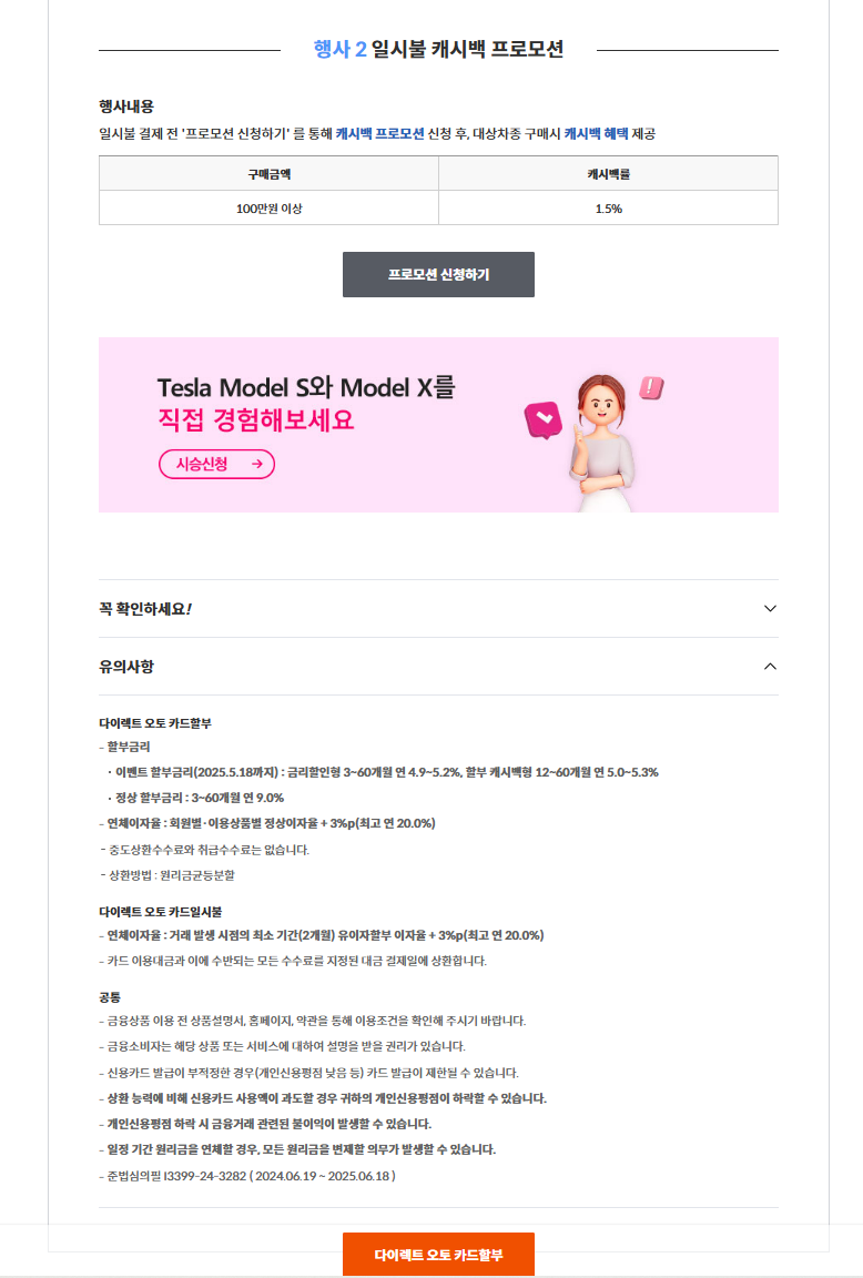 테슬라 삼성카드 다이렉트 오토 링크