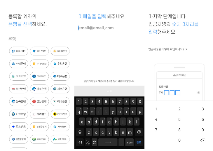 2. 계좌번호 입력 -> 이메일 입력 -> 계좌확인