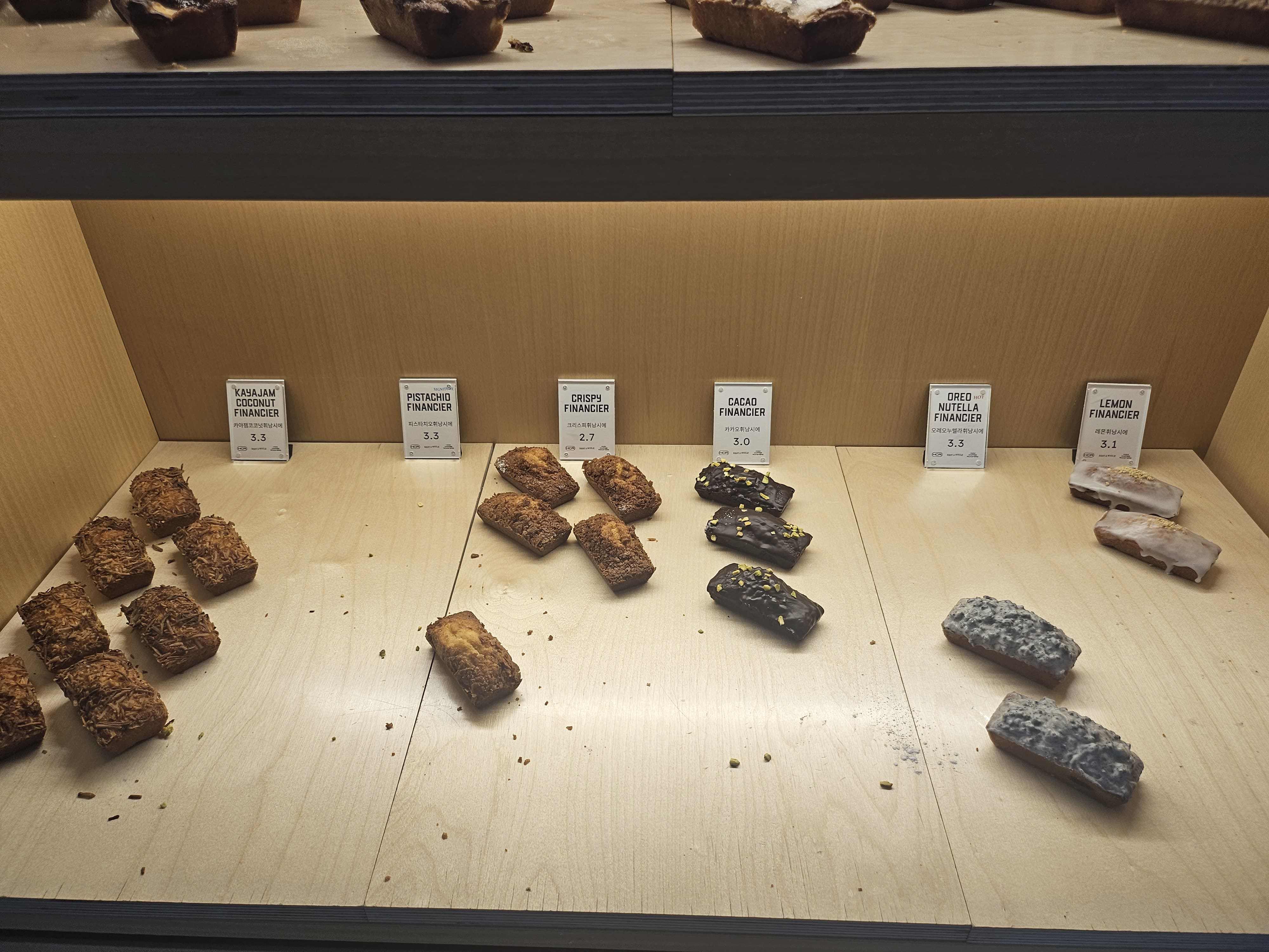 흠커피 HCR은 다양한 종류의 휘낭시에와 케이크를 팔고 있어서, 카페에 들르신 후 선물용 디저트를 포장해 가시는 분들도 계셨습니다. 직접 맛보고 선물도 할 수 있는 게 장점인 것 같습니다.