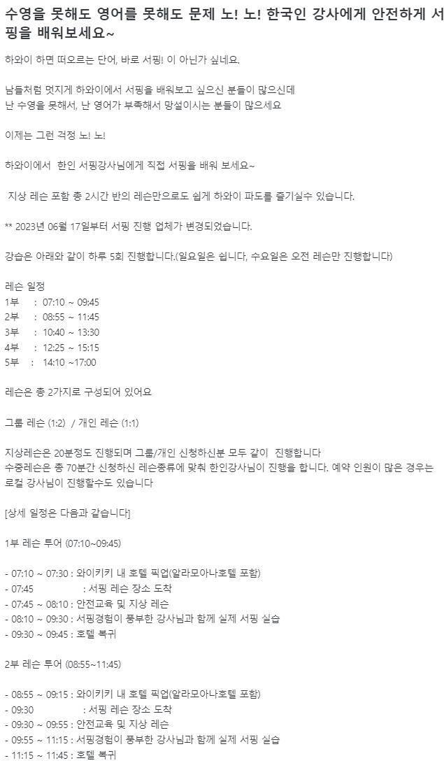 하와이 여행에서 서핑을 고민하시는 분들이라면, 적극 추천드립니다.
