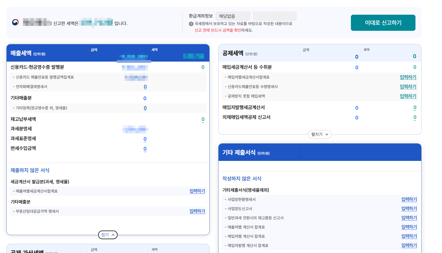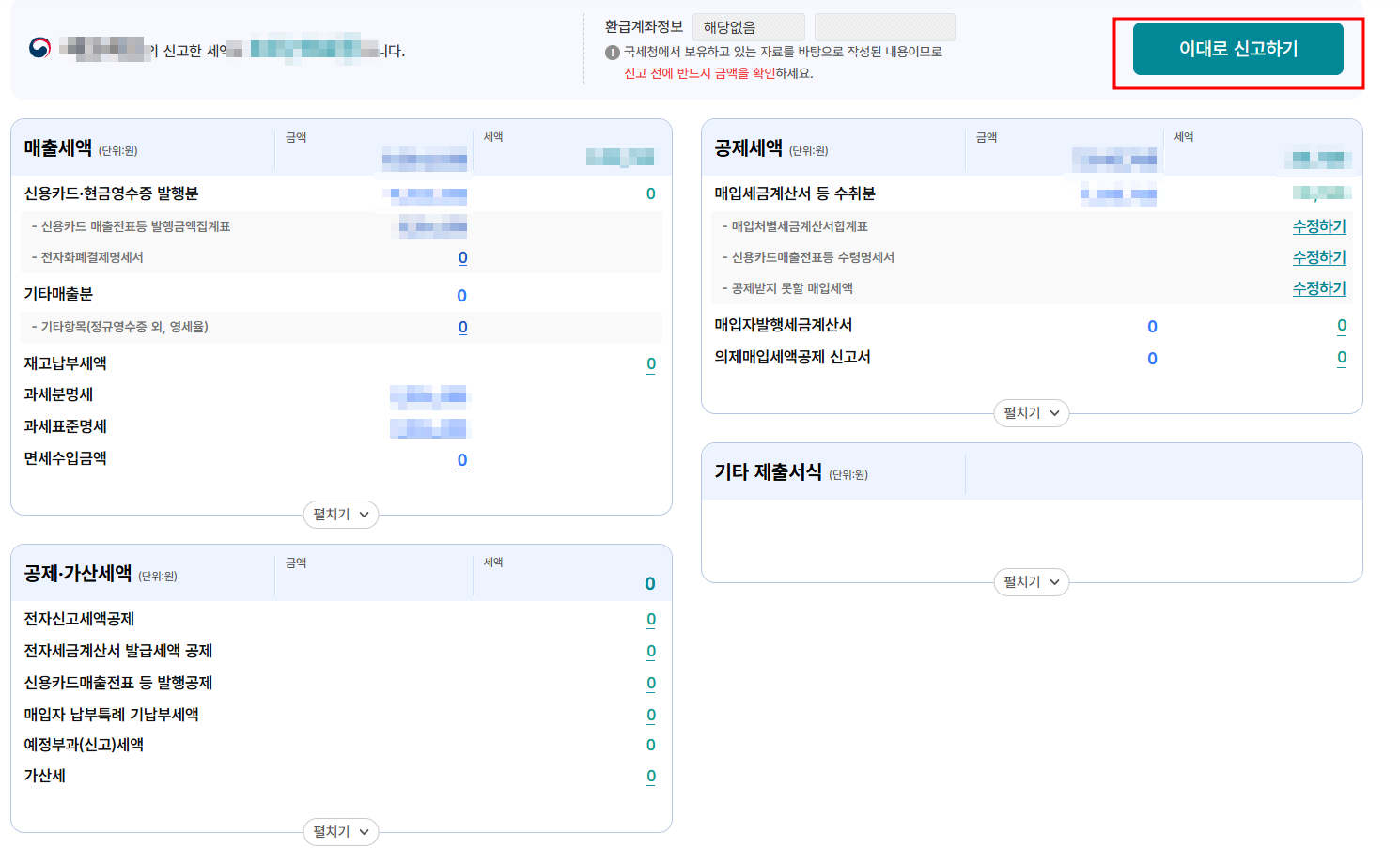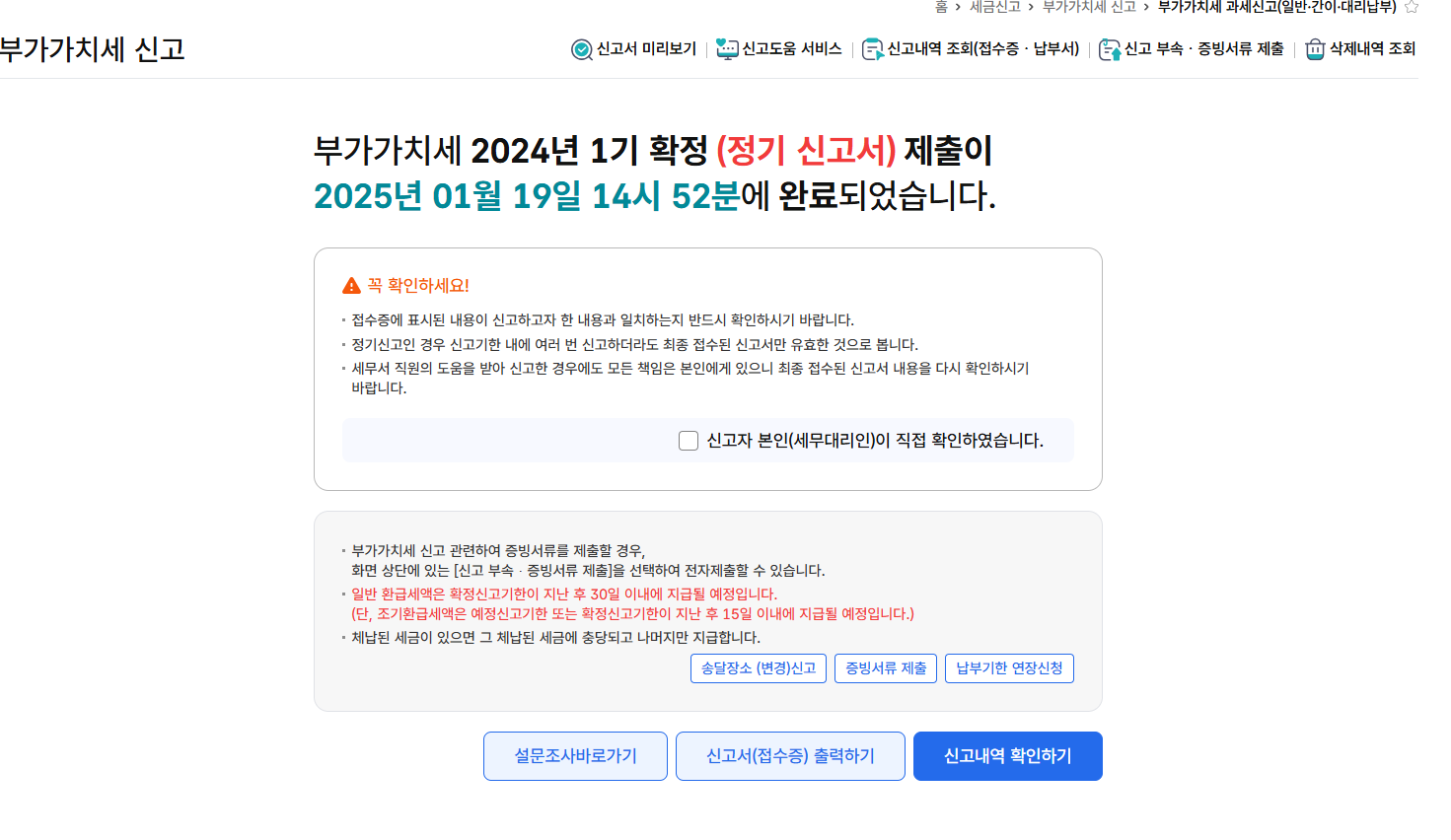 이것으로 부가가치세 신고를 마칠 수 있습니다.
