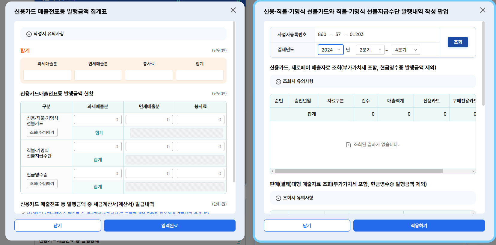 여기도 동일하게 불러오기 및 조회하기 버튼을 통해 값을 입력할 수 있습니다.
