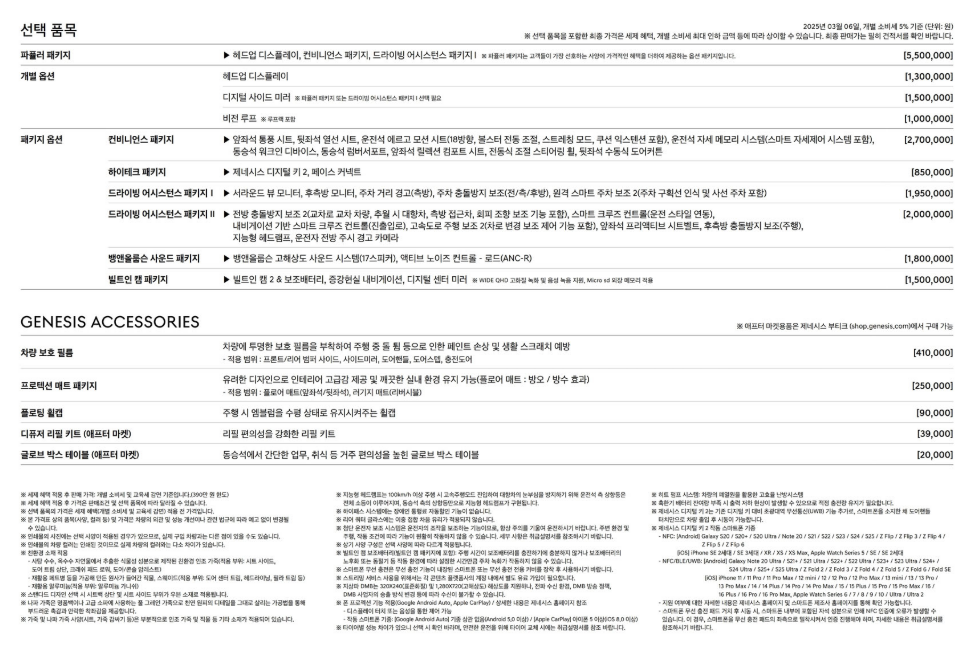 제네시스 2025년 GV60 옵션표 필수 선택 사양
