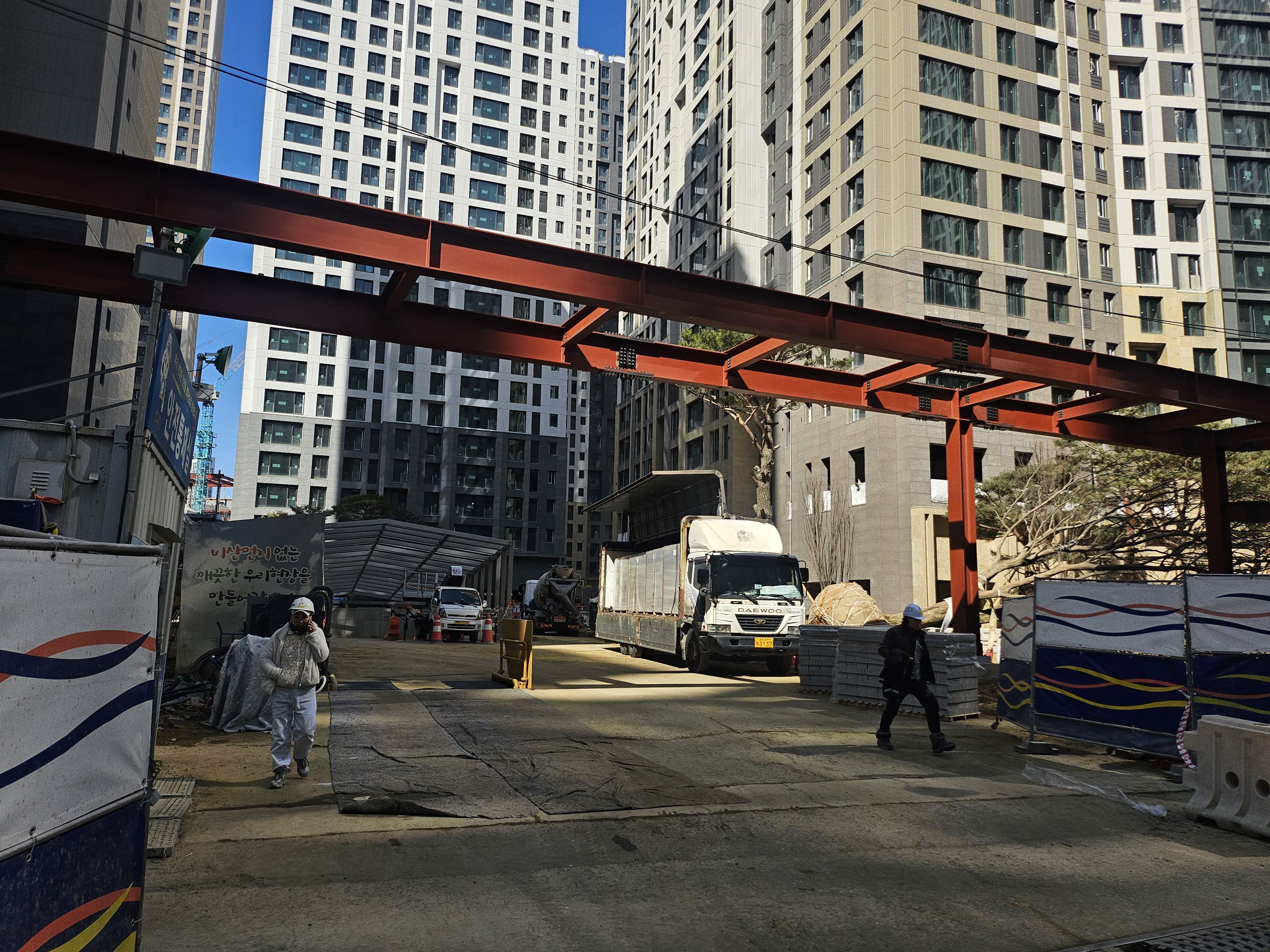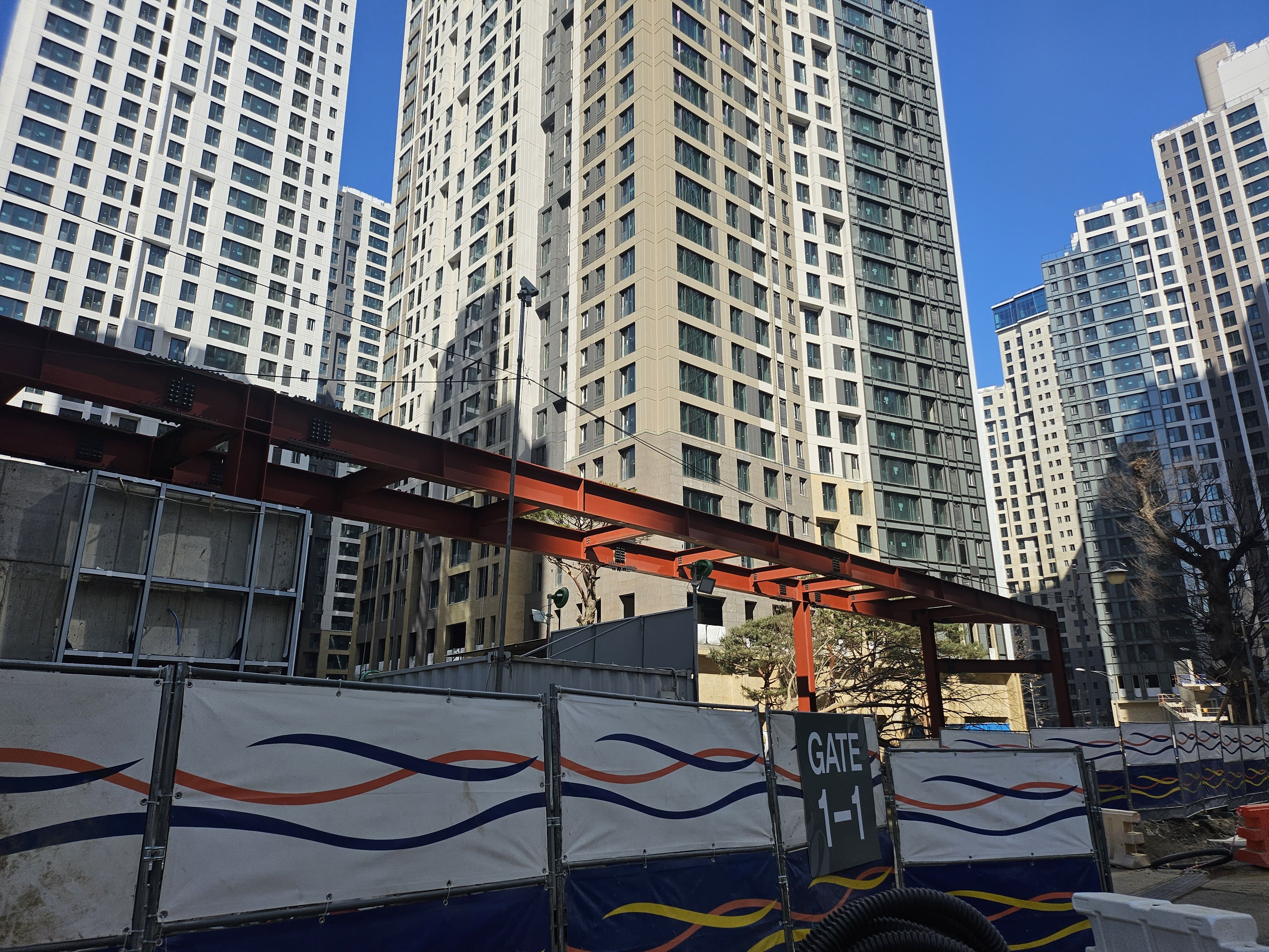 아직 문주 공사가 한창이었습니다. 문주도 상당히 크고 넓은 것을 확인했습니다. 반포 신축 아파트의 문주는 상당히 기대가 됩니다.