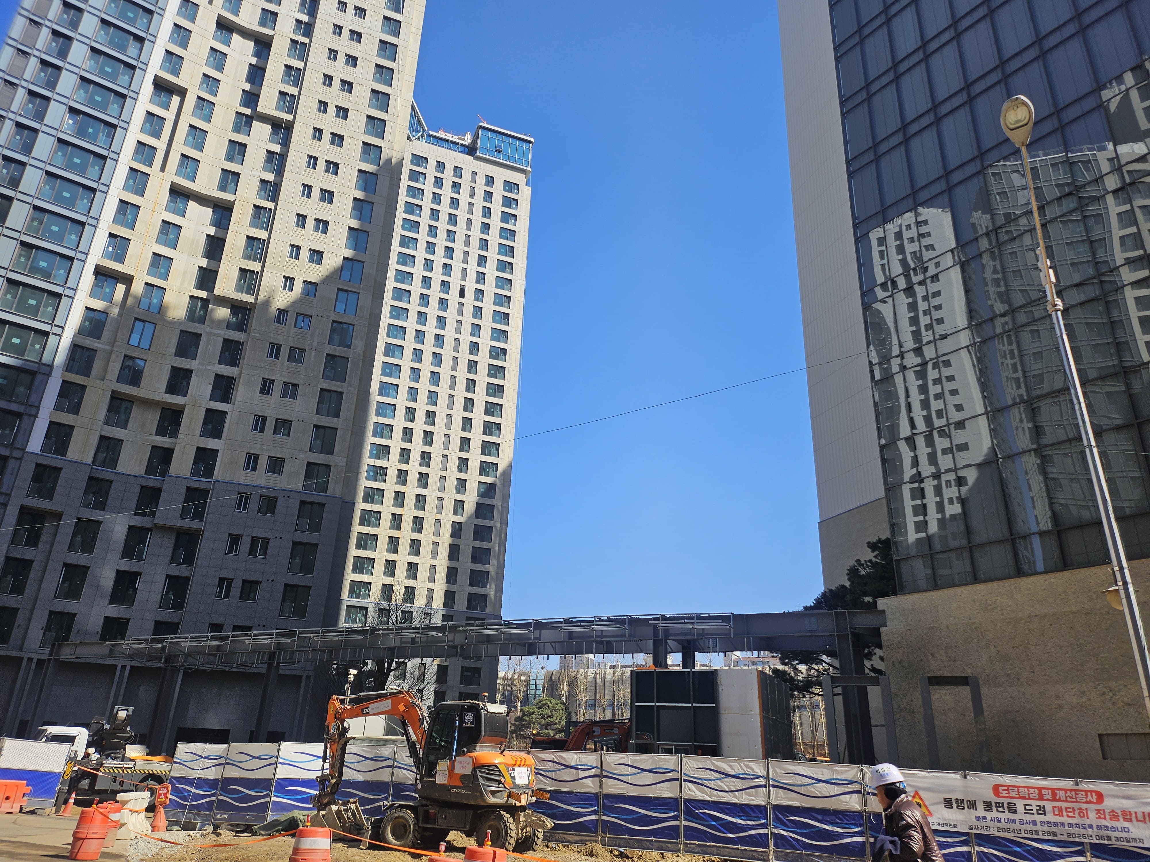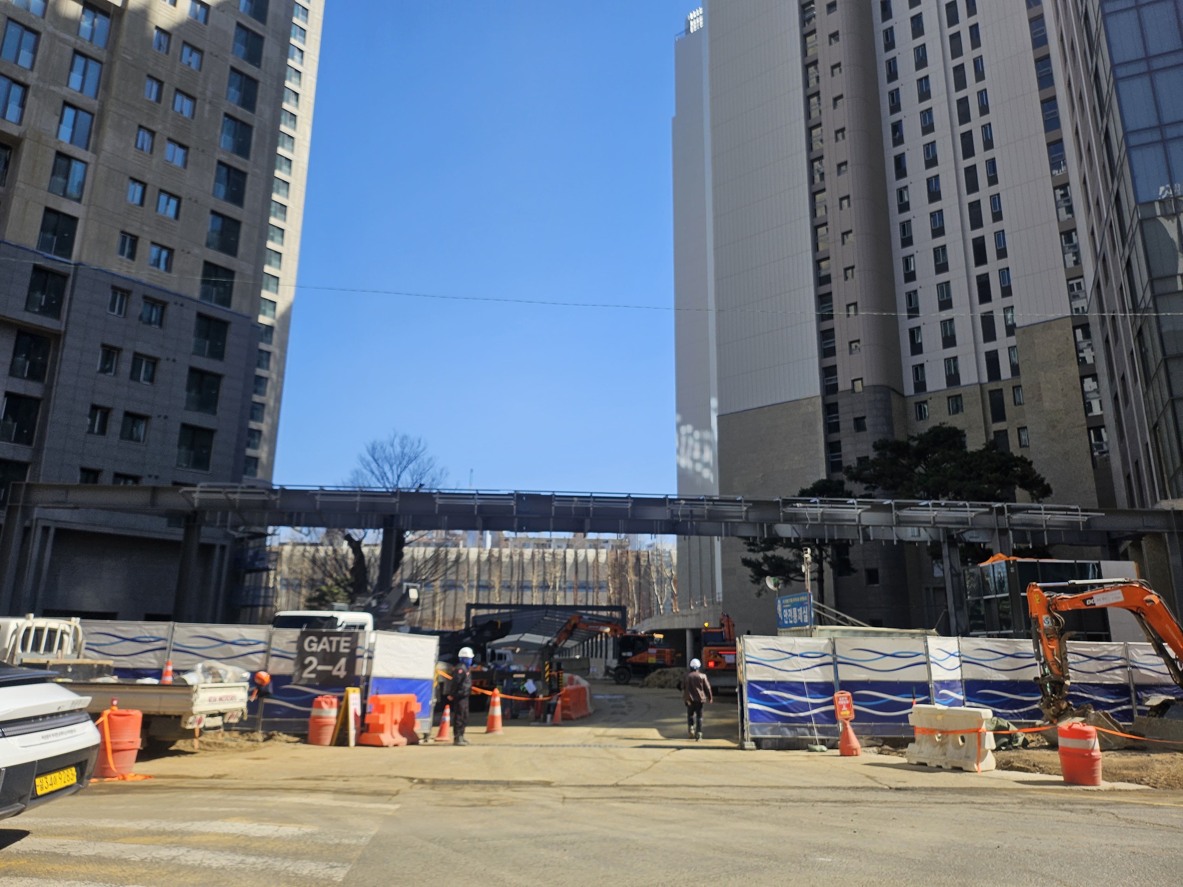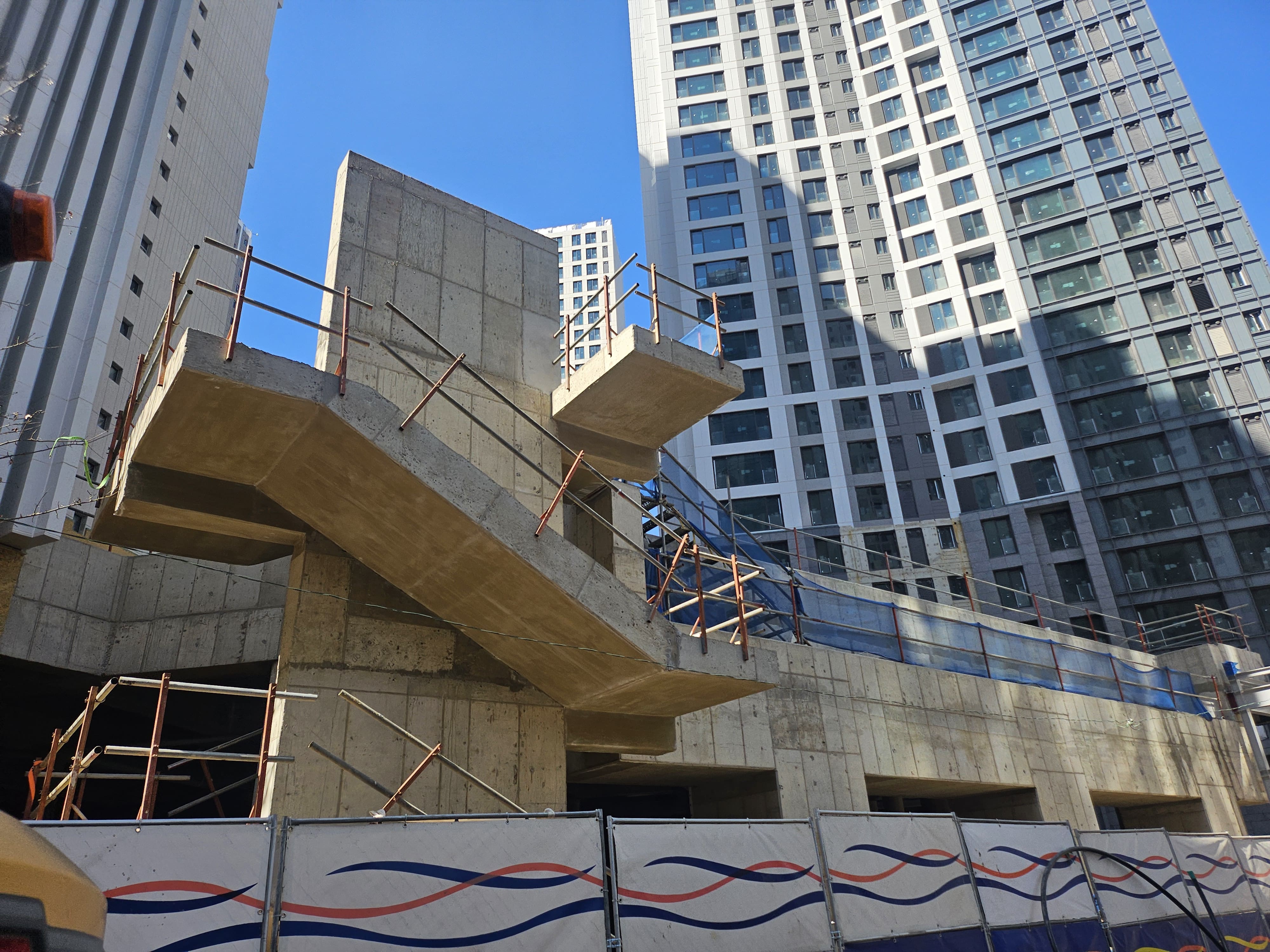아직 문주 공사가 한창이었습니다. 문주도 상당히 크고 넓은 것을 확인했습니다. 반포 신축 아파트의 문주는 상당히 기대가 됩니다.