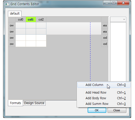 3. 칼럼을 추가해서 그리드를 만듭니다.