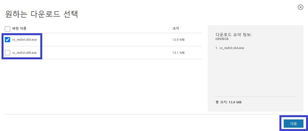 3. 자신의 Windows 운영체제(32비트, 64비트)에 맞게 파일을 선택한 후 '다음'버튼을 클릭한다.