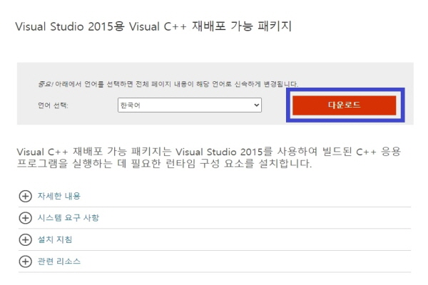 Visual Studio 2015용 Visual C++ 재배포 패키지 설치